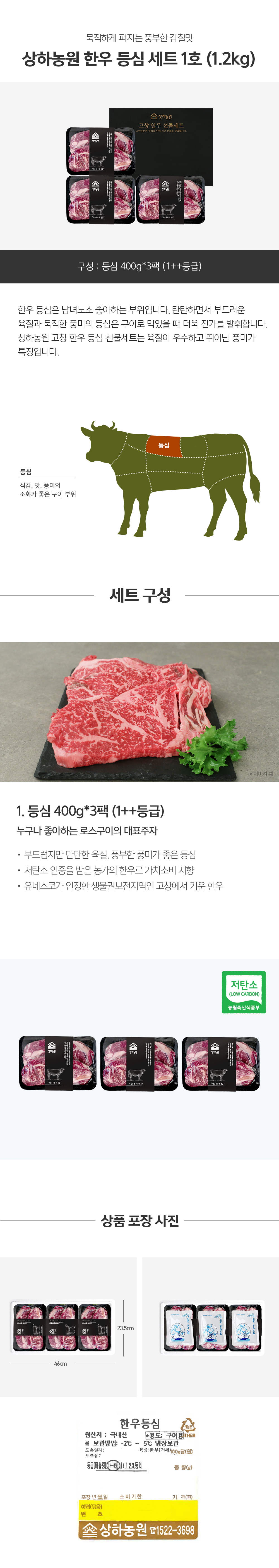 | 상품명 | [2026 설날] 상하농원 한우 등심 세트 1호 (1.2kg) |