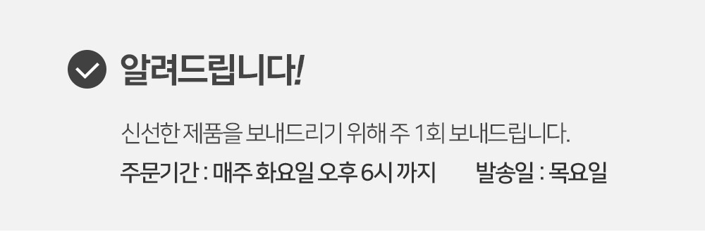 상하농원은 주 5일(월~금/공휴일 제외). 15시 이전 주문건까지 당일 발송 가능합니다.