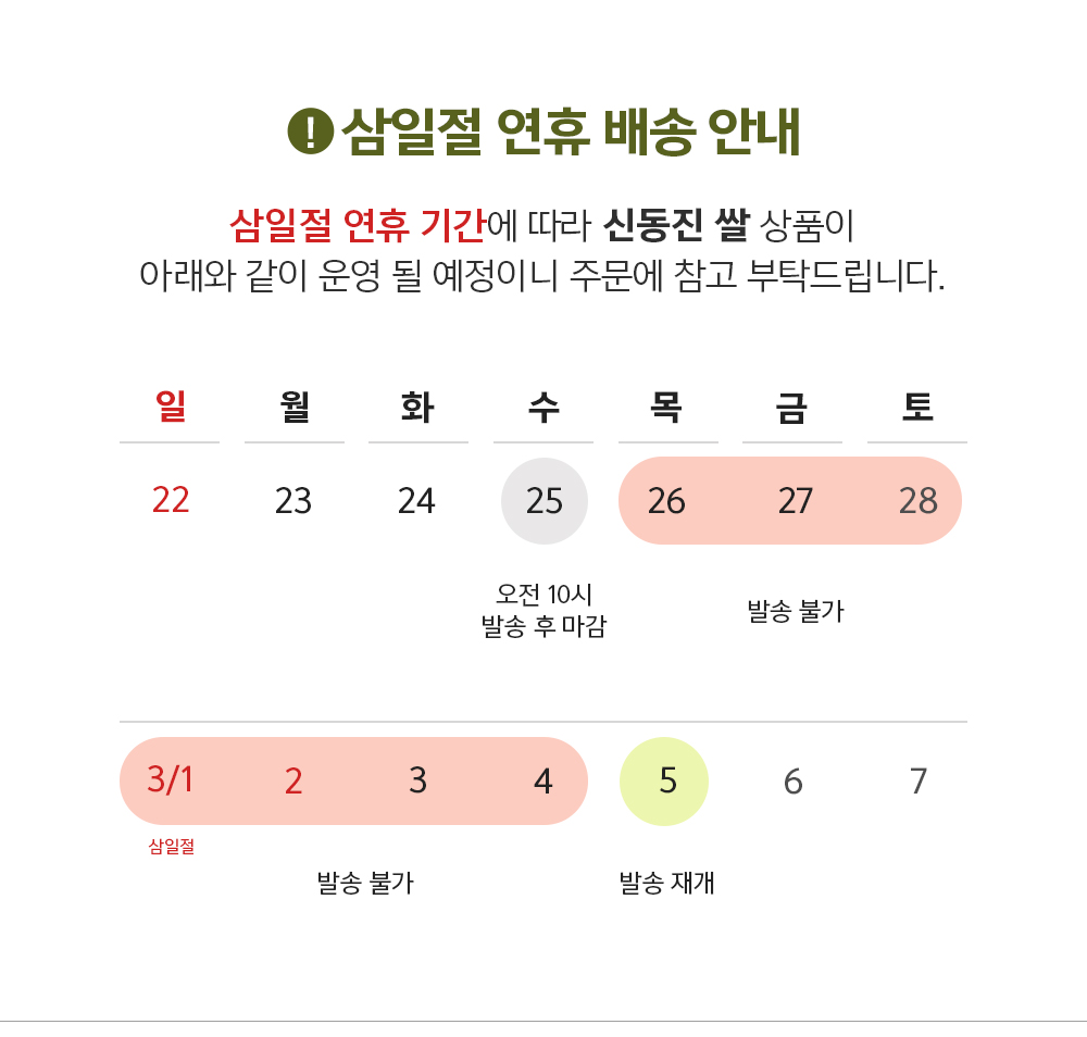 상하농원은 주 5일(월~금/공휴일 제외). 15시 이전 주문건까지 당일 발송 가능합니다.
