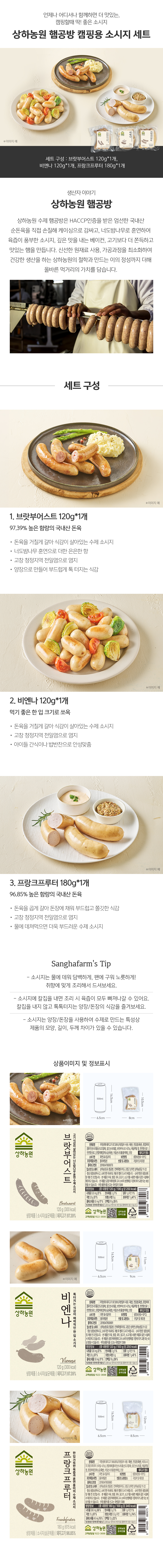 상품명 상하농원 캠핑용 소시지 SET 420g 인증여부 HACCP, 무항생제인증