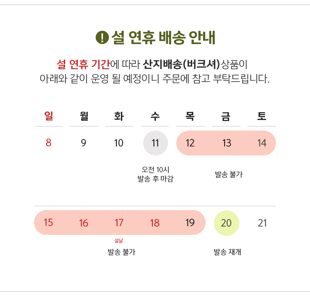 상하농원은 주 5일(월~금/공휴일 제외). 15시 이전 주문건까지 당일 발송 가능합니다.