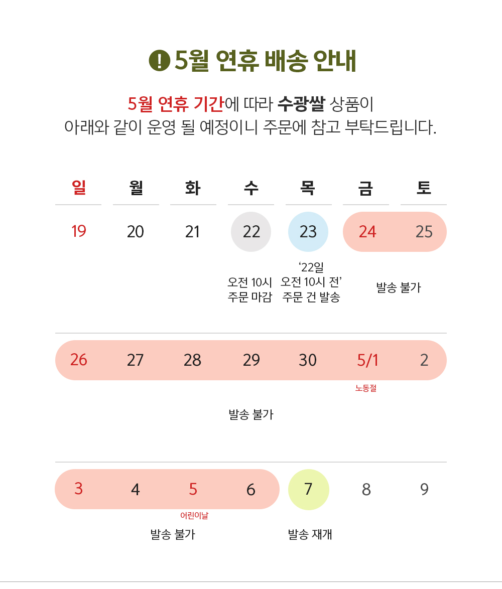 상하농원은 주 5일(월~금/공휴일 제외). 15시 이전 주문건까지 당일 발송 가능합니다.