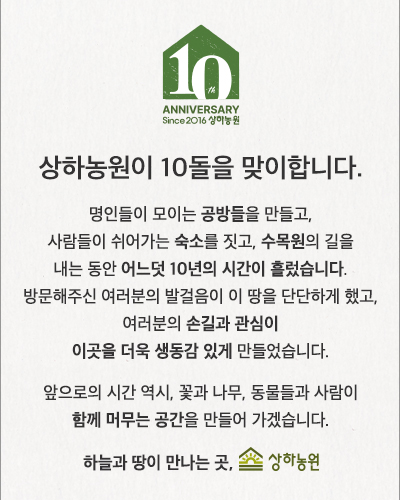 오늘 상하농원 운영시간 09:30~21:00 자세히 보기 >