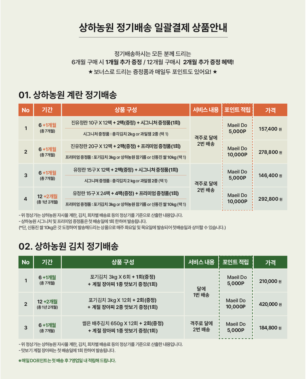 상하농원 일괄결제 정기배송 상품