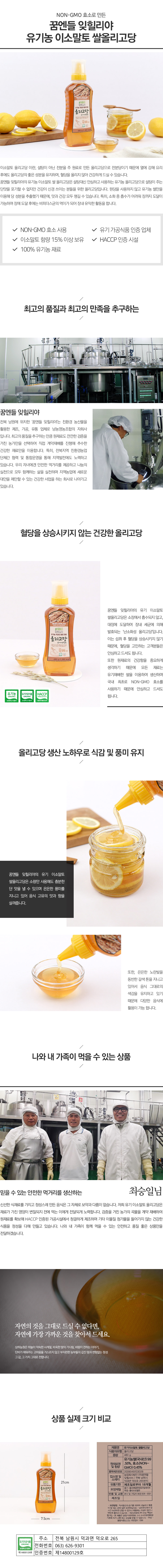 | 인증여부 | 유기농, 유기가공식품, HACCP |