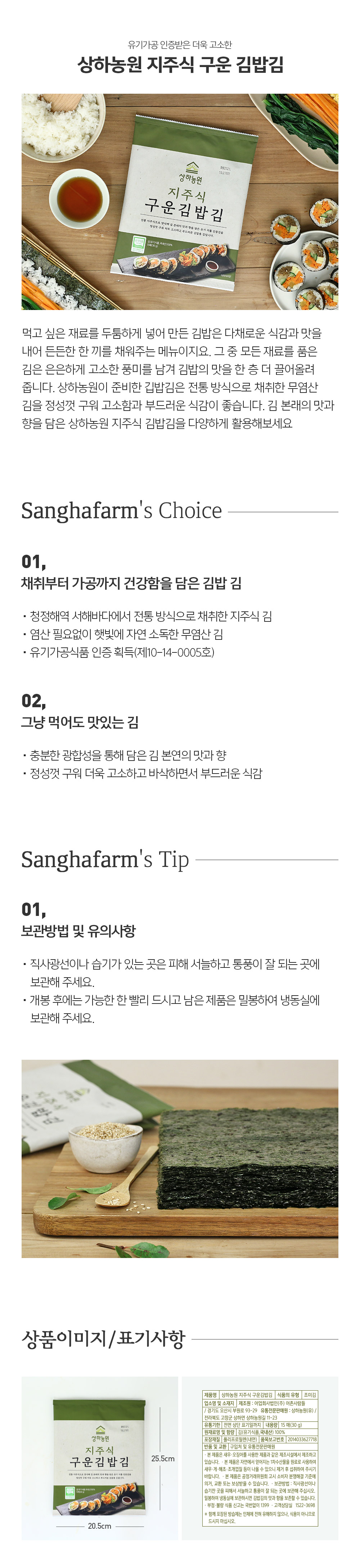 | 상품명 | 상하농원 유기 지주식 구운 김밥김 30g(15매) |