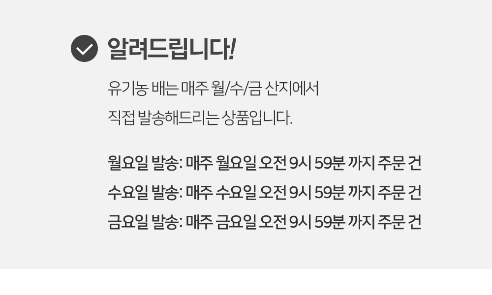 상하농원은 주 5일(월~금/공휴일 제외). 15시 이전 주문건까지 당일 발송 가능합니다.