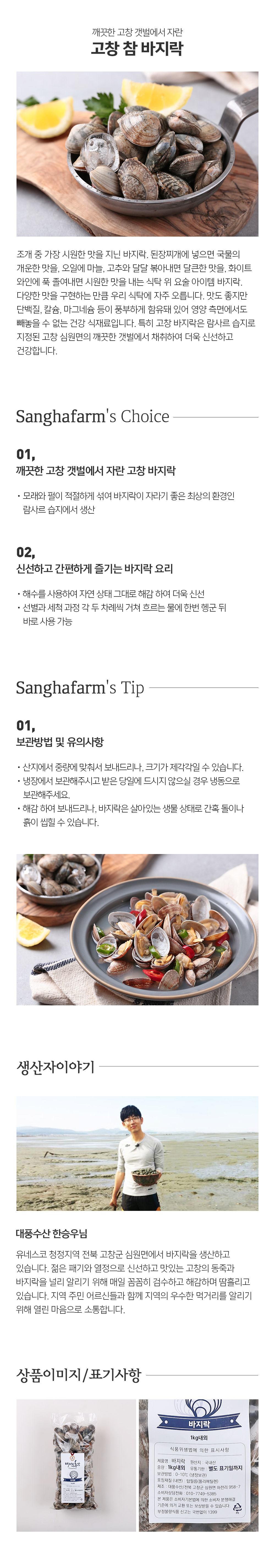 | 상품명 | 고창 바지락 1kg*2봉 |