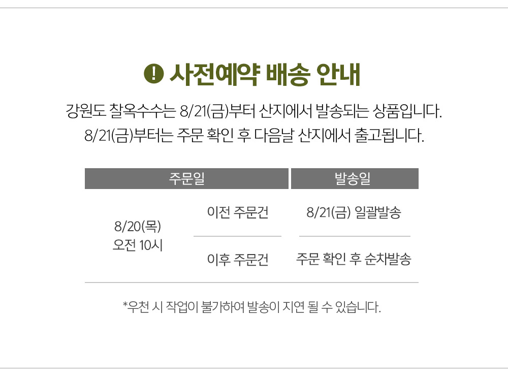 | 상품명 | [8/21 부터 발송] 강원도 치악산 찰옥수수 20개 (미백) |