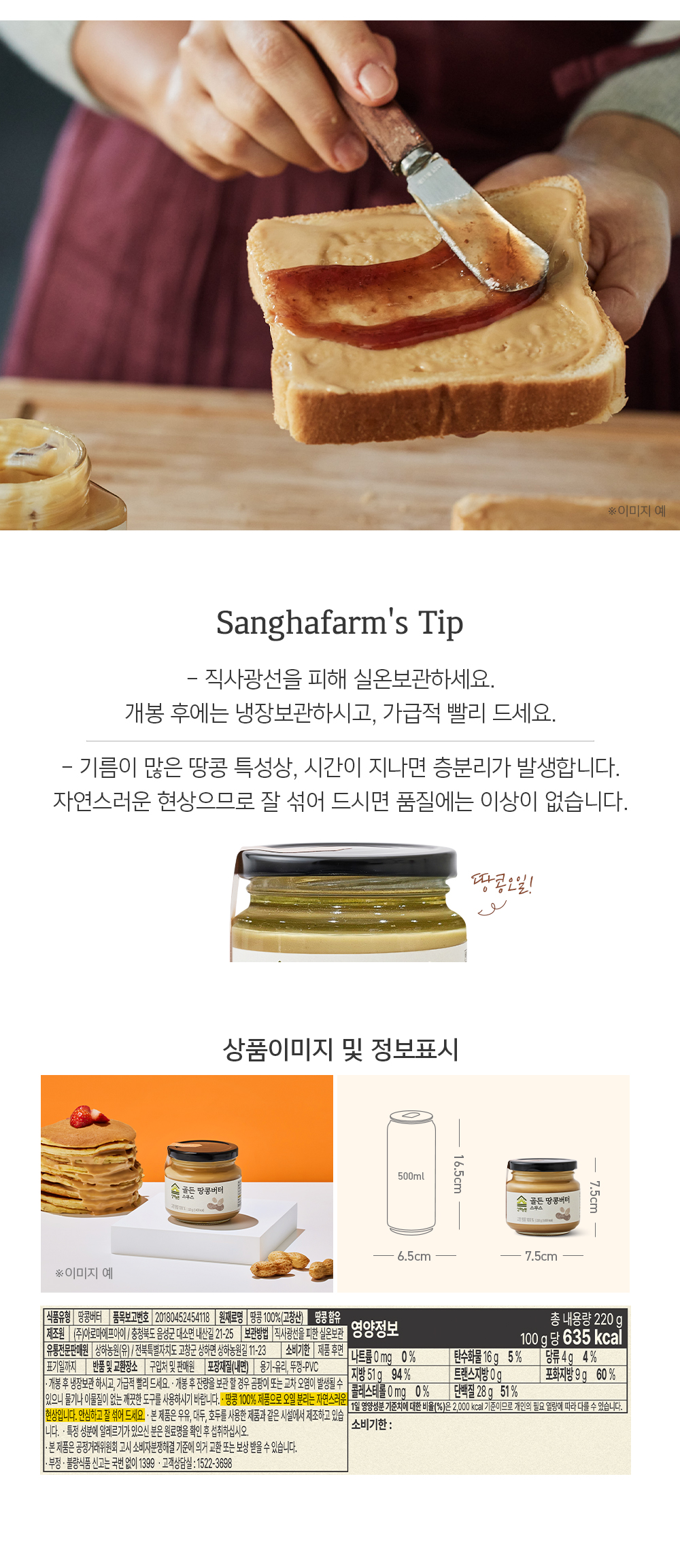 상품명 상하농원 골든 땅콩버터 스무스 220g 인증여부 상품 상세설명 참고
