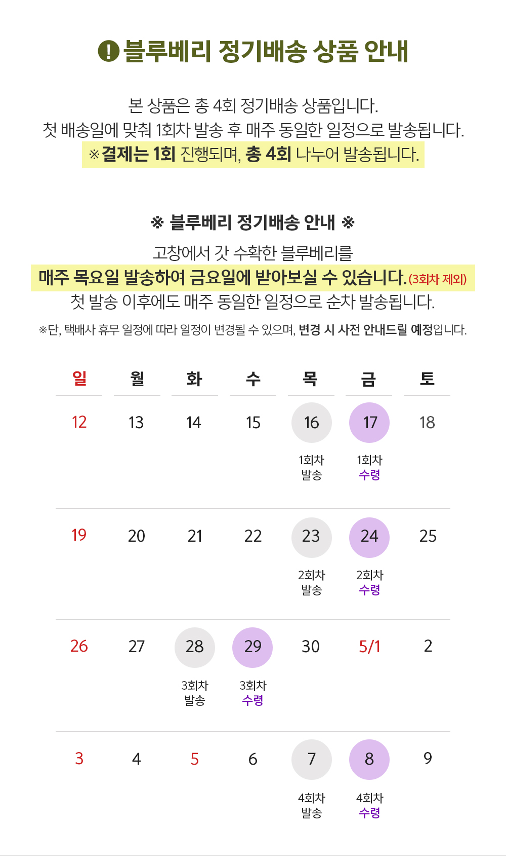 상품명 [매주4팩 총4회] 고창 블루베리 100g (특/16mm이상)*4팩 인증여부 매주4팩 정기배송(무농약)